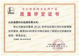 中石化系統水處理產品質量評定證書